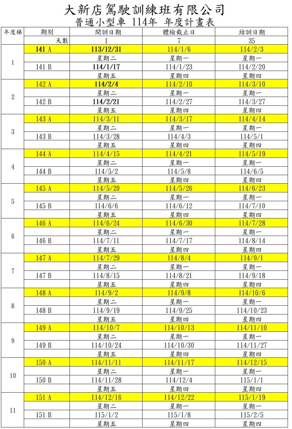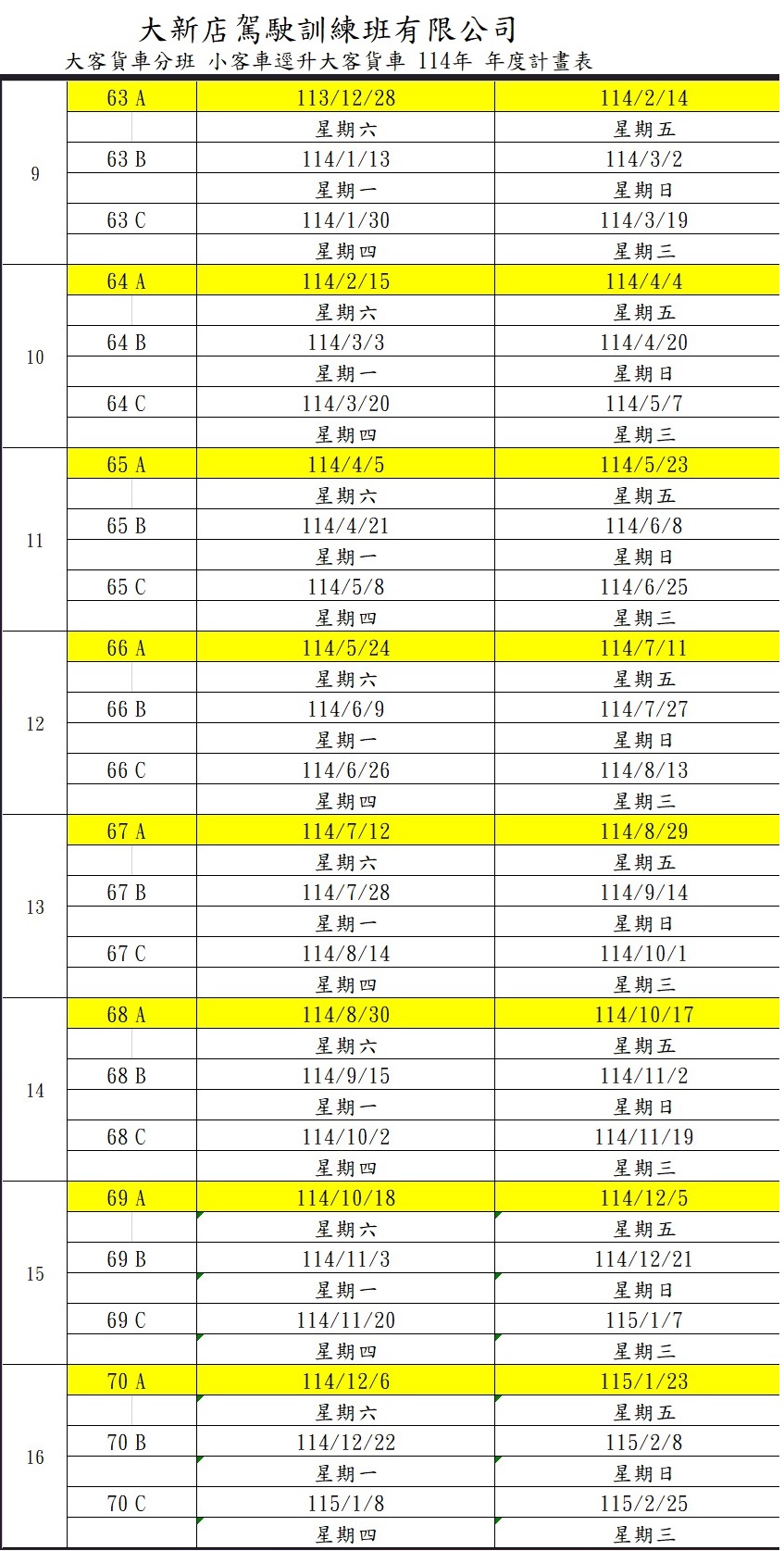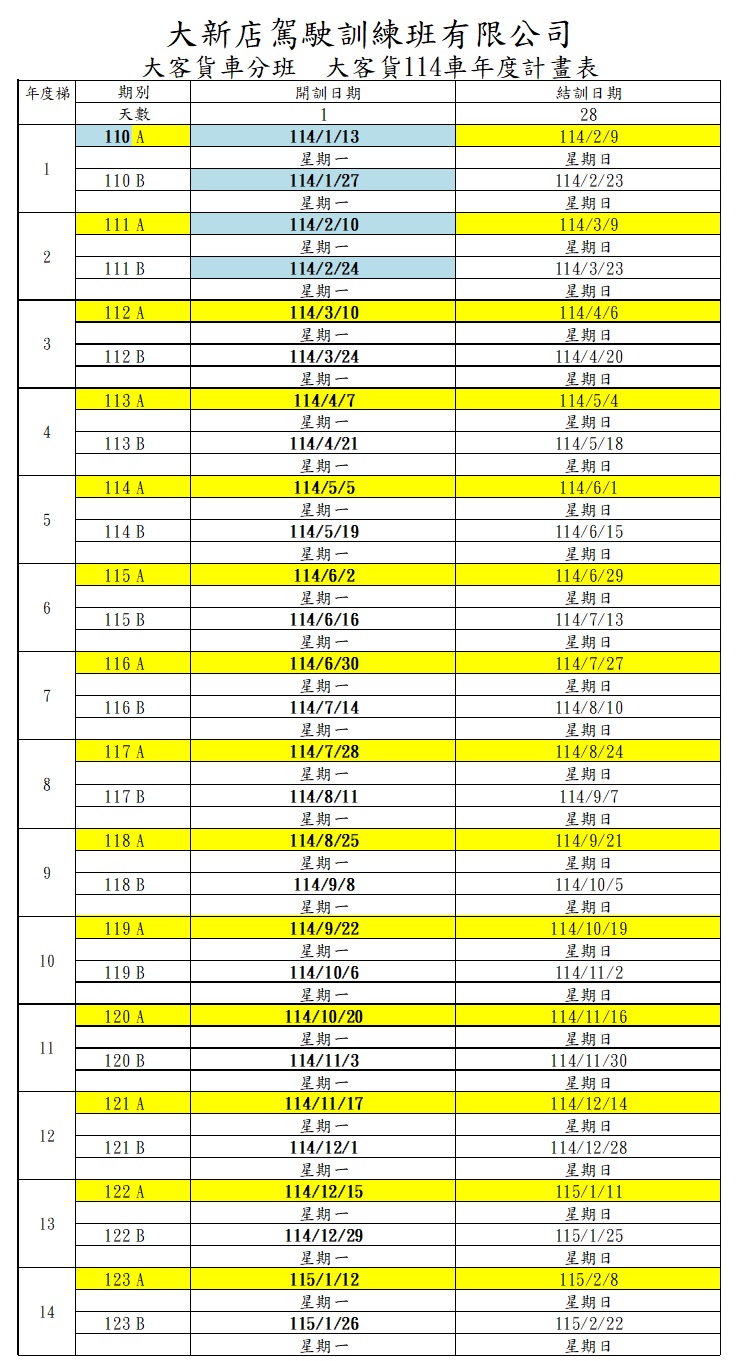 114年 小客車升大貨車 / 大貨車升大客車 28天訓練期